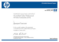 Квалификация сервисных инженеров по обслуживанию техники Hewlett Packard.