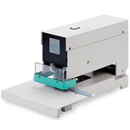Узкий электрический степлер для офиса и скрепления упаковки. Два или больше степлера могут быть соединены последовательно волоконно оптическим кабелем для скрепления одновременно. Степлеры соединены последовательно и поэтому не дают перегрузку на линию. Запатентованное электронное управление, пневматическое демпфирование делает скрепление простым и приятным. Сшивание происходит автоматически или с помощью педали. Защитный козырек обеспечивает дополнительную безопасность.