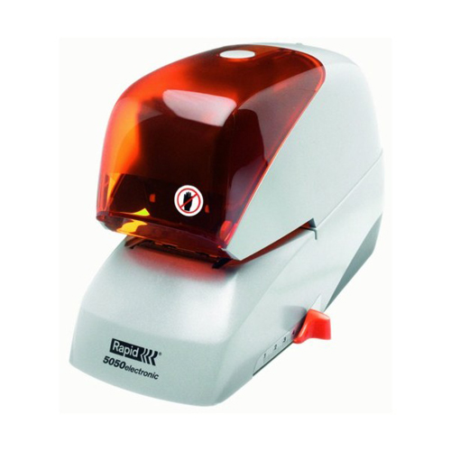 Электронный степлер Rapid 5050e с загружаемой кассетой (5 000 скоб, один тип скобы независимо от кол-ва листов). Гарантируется 500 000 скреплений (изнашиваемые части каждый раз заменяются с новой кассетой). Регулируемая глубина скрепления и точное скрепление до 50 листов. Простая загрузка. Световой индикатор предупредит вас задолго до того, как скобы в кассете заканчиваются. Чрезвычайно тихая работа и низкая вибрация.